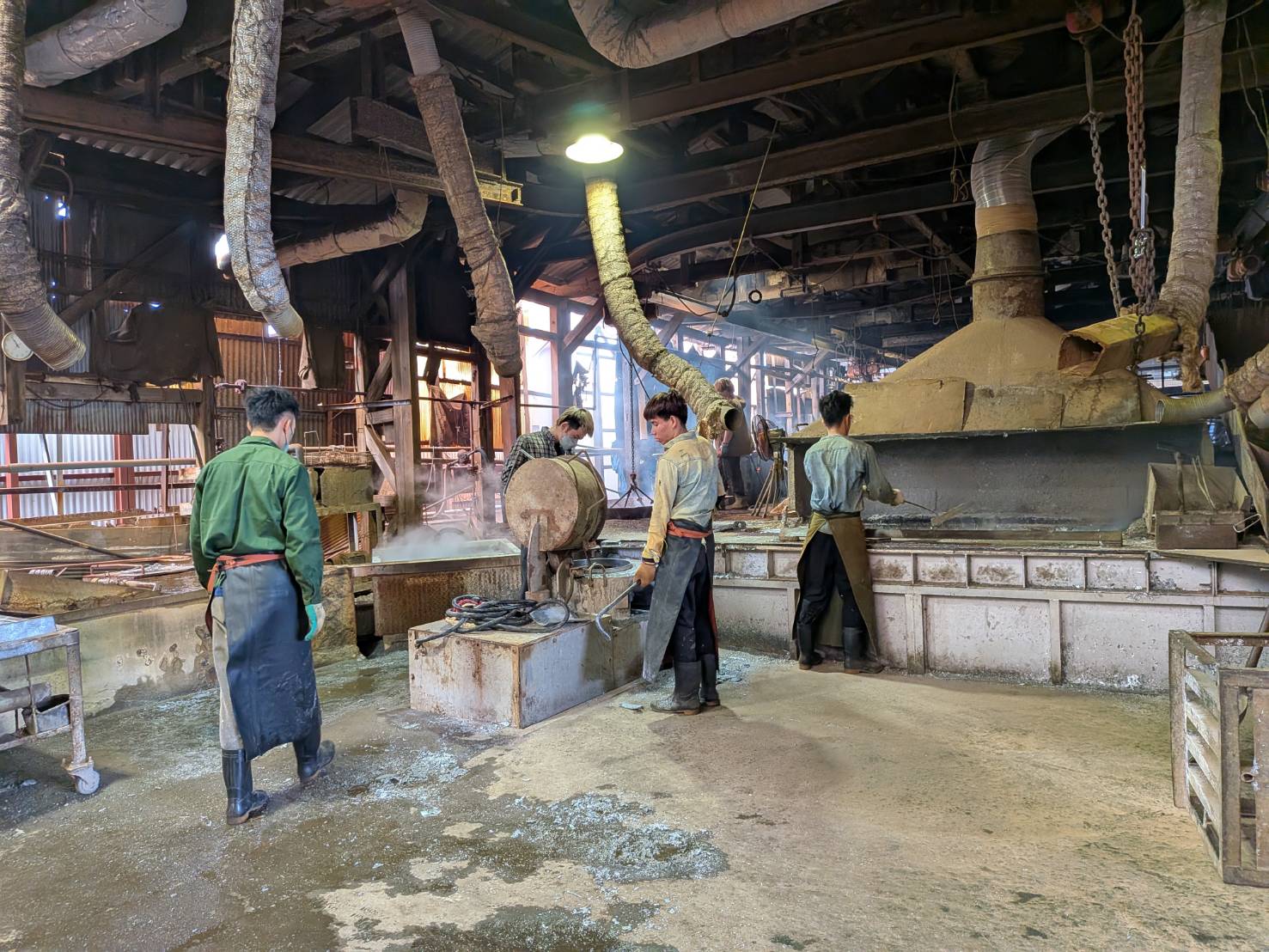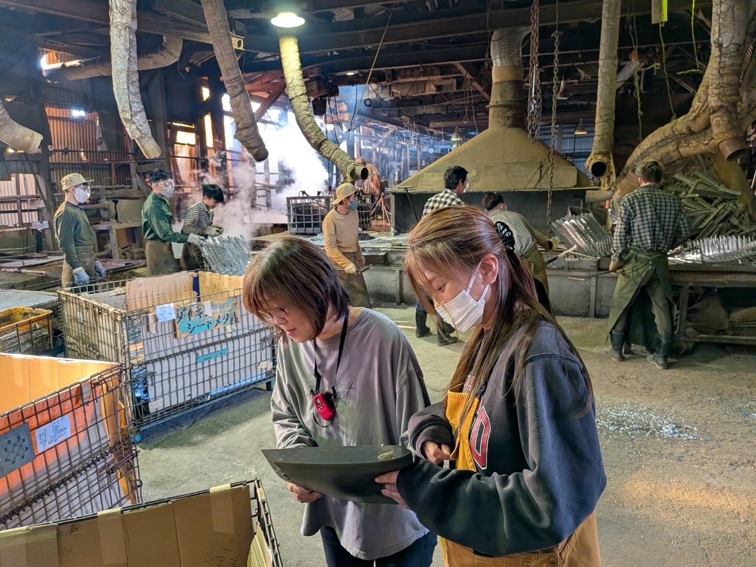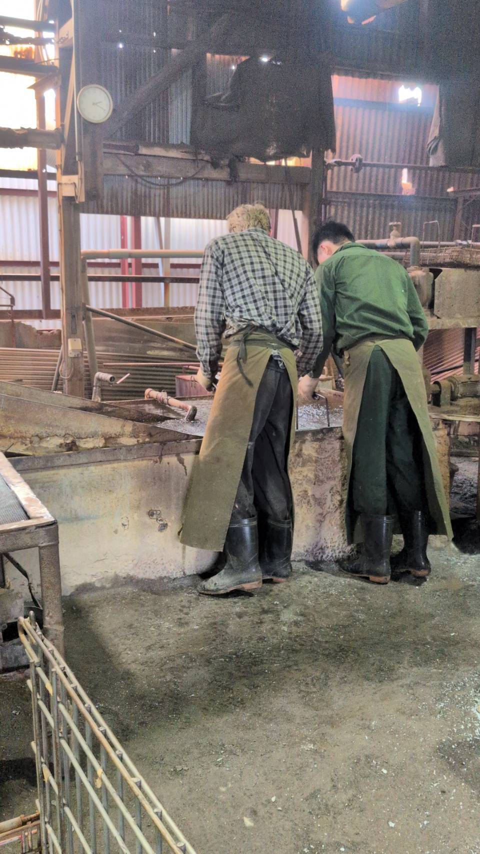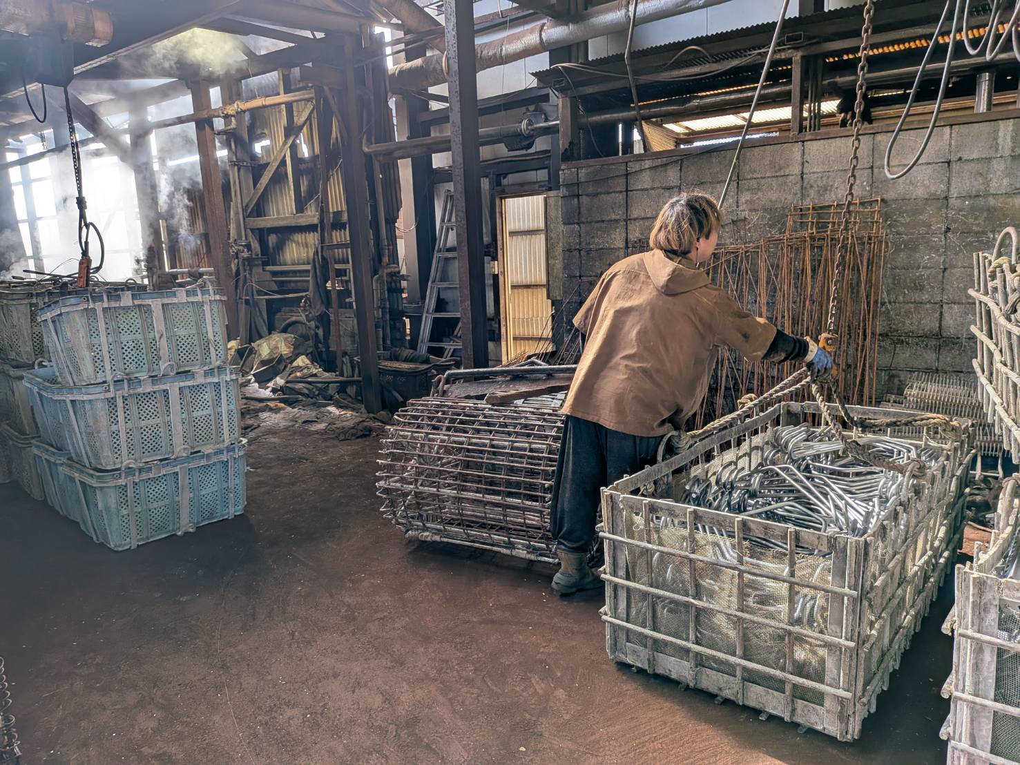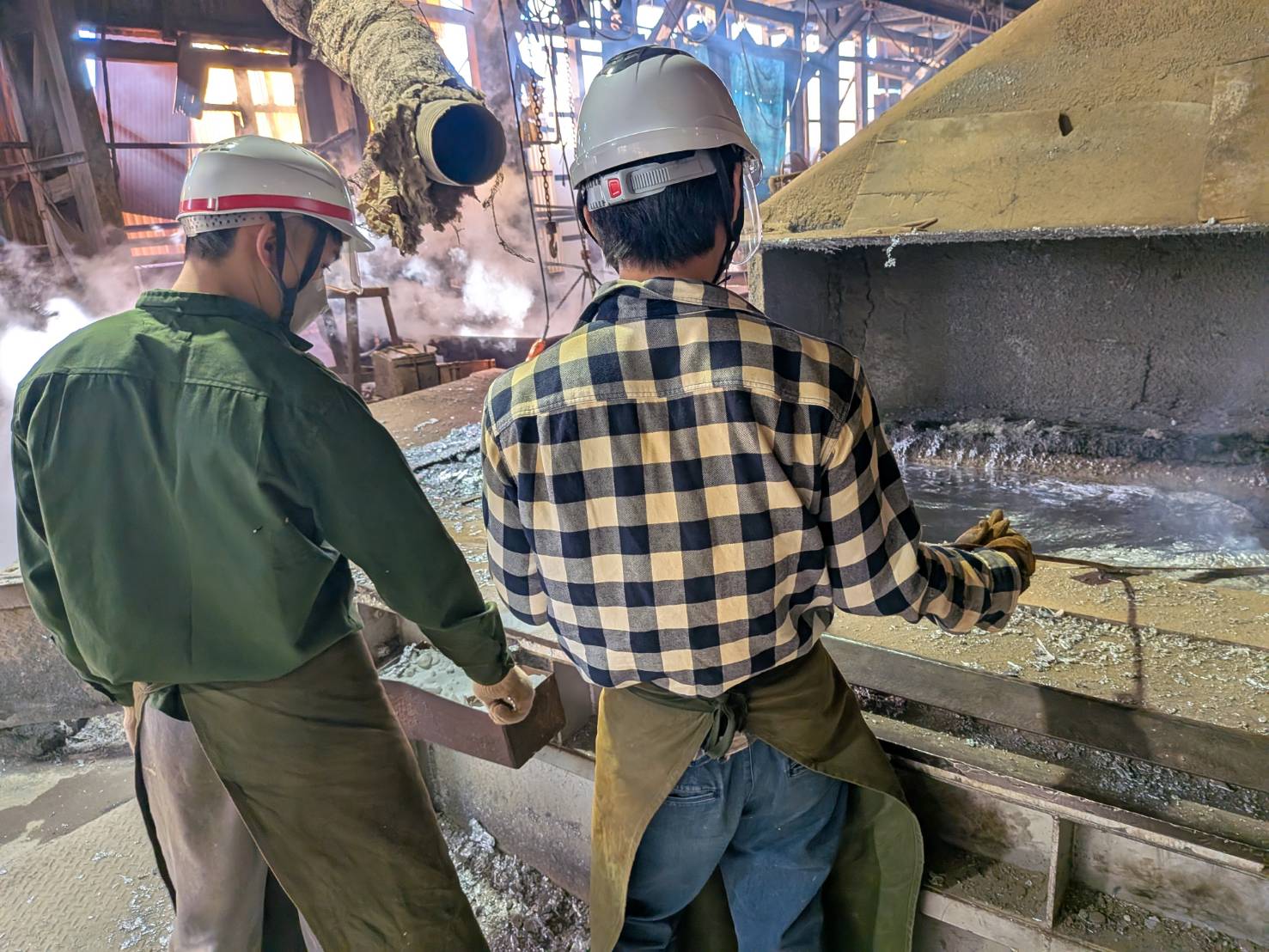 溶融亜鉛鍍金を行う釜の温度の影響で、工場内温度は高いです。当然、作業場の空調設備は完備しておりますが、夏場は特に、過酷な労働環境に備える基礎体力、水分補給が必要になります。その労働環境に見合った賃金設定や手当の見直しをコンスタントに行っております。具体的には夏季は残業は無しにする。夏場は勤務時間の前倒しを行い、涼しい時間から作業を開始し、午後にはアイスクリーム休憩を設けています。通年につき土曜も含めコンスタントに休日を設定することで、しっかり休んで、しっかり勤務というメリハリを大切にしています。