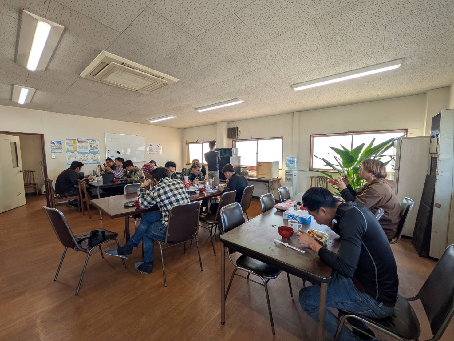 亜鉛鍍金加工の業務内容上、暑さが過酷な工程がございます。快適に過ごして頂ける広々とした休憩室やシャワー設備も用意しています。会社見学を兼ねて、是非、お会いしてお話をさせていただければと考えております。従業員は会社の宝です。当社で働いて良かったと思って頂ける職場作りに力を入れております。社員にとってプチ幸せの積み重ねを大切にするため、ご飯会や休憩室でピザを楽しむ日なども設けております。